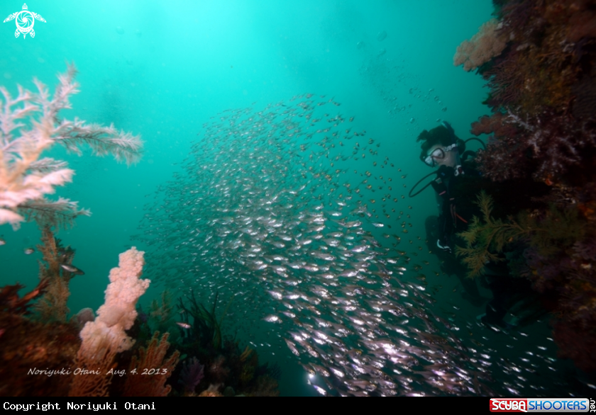 Swimming THrough under the fish reef | Noriyuki Otani's Photo