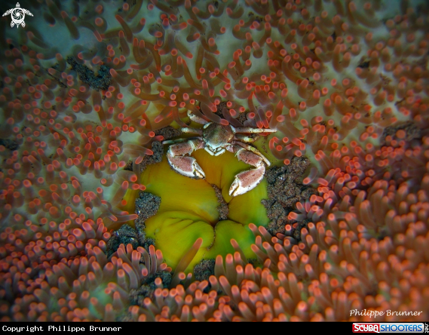 Porcelain crab near the anemone mouth | Philippe Brunner's Photo