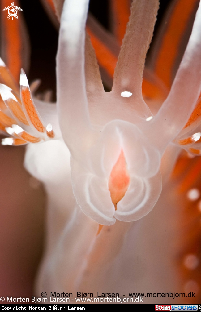 Common Name A Flabellina eating the terminal bud of a hydroid