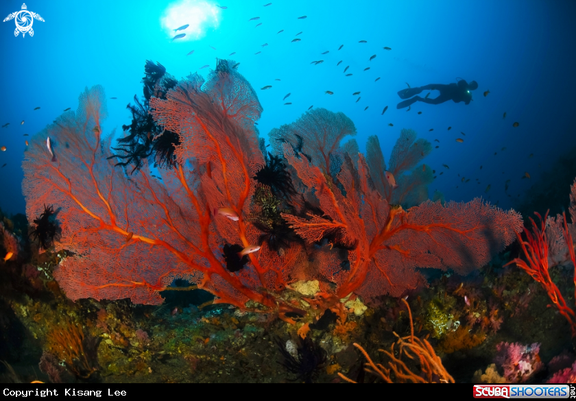 Coral and diver | Kisang Lee's Photo