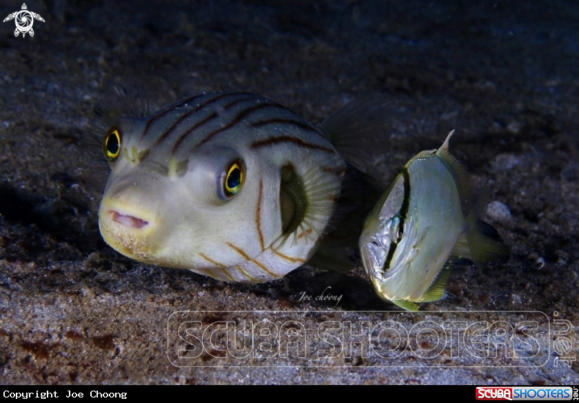 Scientific Name Arothron manilensis & Carangoides coeruleopinnatus