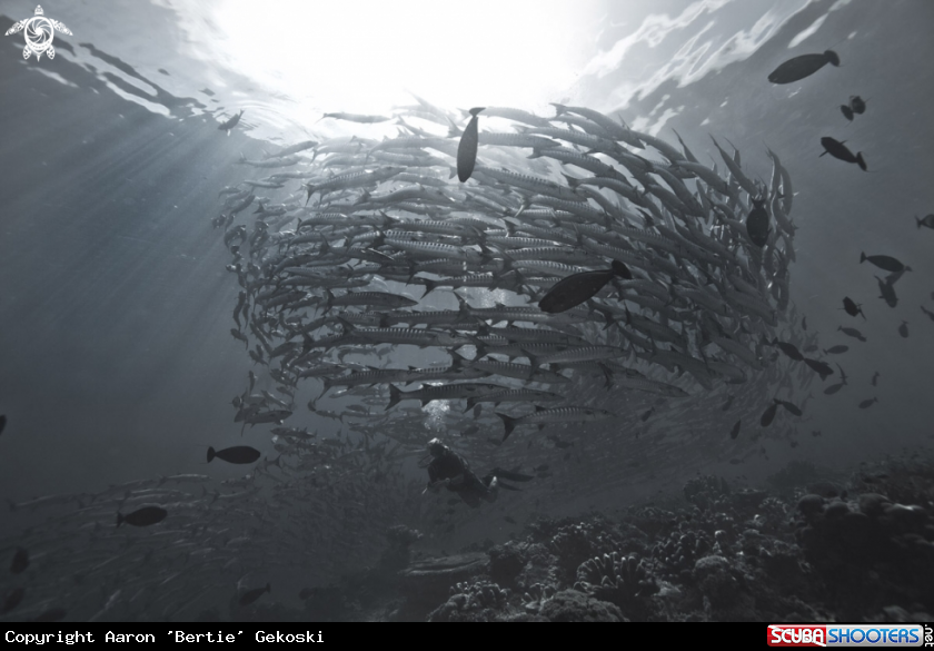 Diver in barracuda tornado | Aaron 'Bertie' Gekoski's Photo