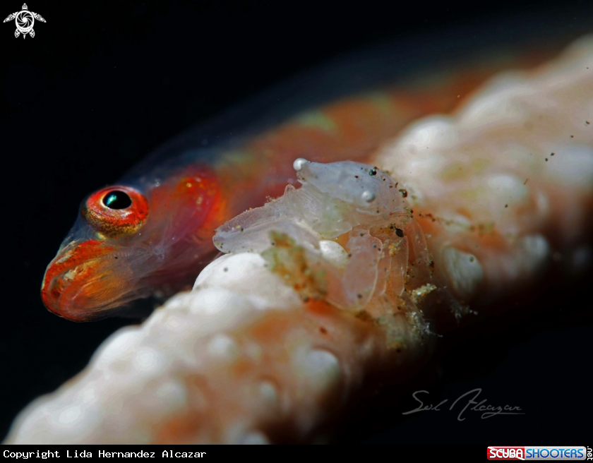 Common Name Whip coral goby and crab