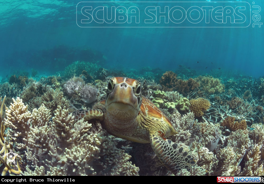 Chelonia mydas resting on the reef | Bruce Thionville's Photo