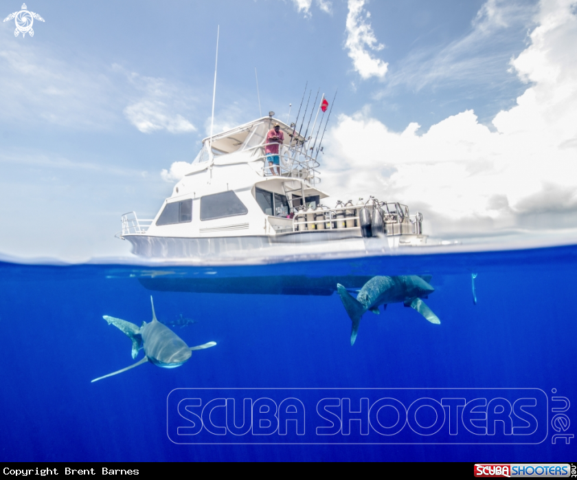 Oceanic White Tip Sharks And Boat | Brent Barnes's Photo