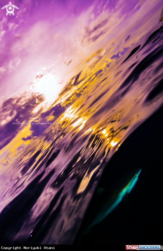half-underwater [[[#]]]1 Shark & Sunset at Vertigo Yap Micronesia | Noriyuki Otani's Photo