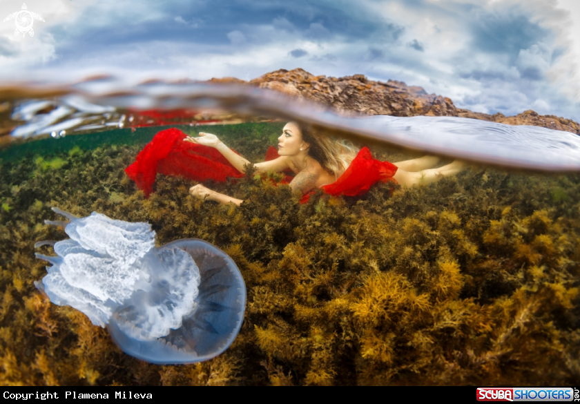 Common Name Split composition with human and jellyfish