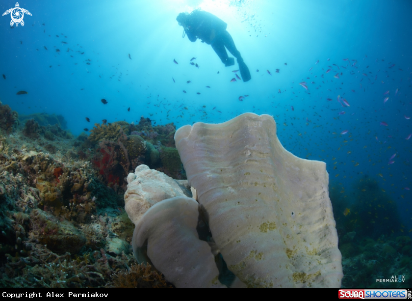 Frogfish and diver | Alex Permiakov's Photo