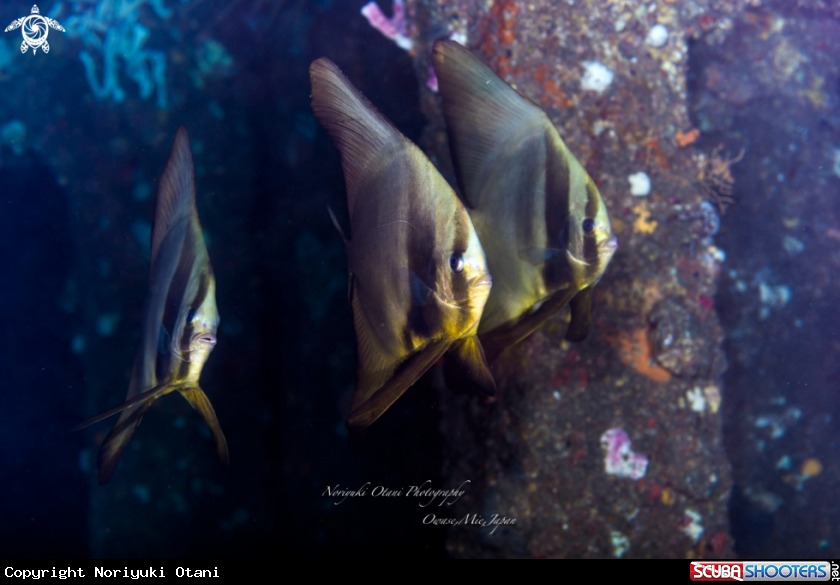 Longfin Batfish swimming fast through among pillars of the fish reef | Noriyuki Otani's Photo
