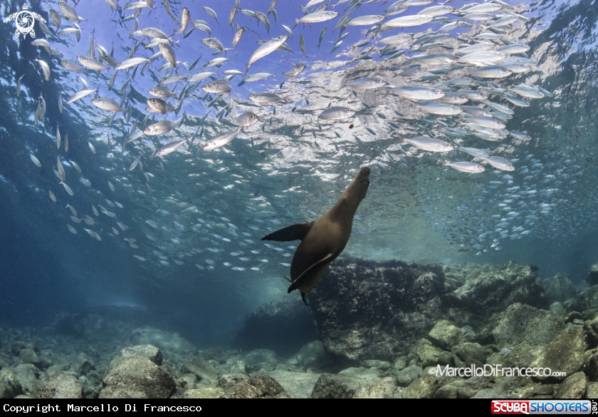Common Name sea lion and sardines