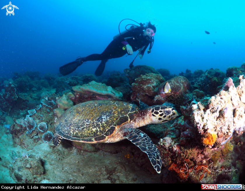 Green turtle and diver | Lida Hernandez Alcazar's Photo
