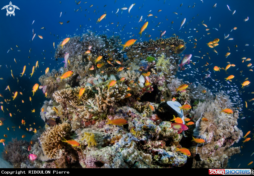Une patate de coraux bien remplie de poissons dans la passe en S à Mayotte. | RIBOULON Pierre's Photo
