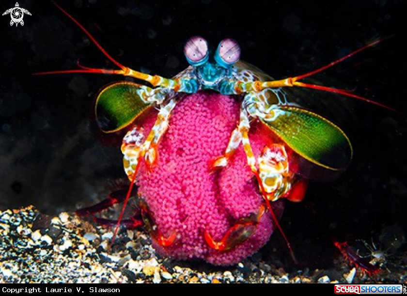 Threatening Peacock Mantis Shrimp Protecting Eggs | Laurie V. Slawson's Photo