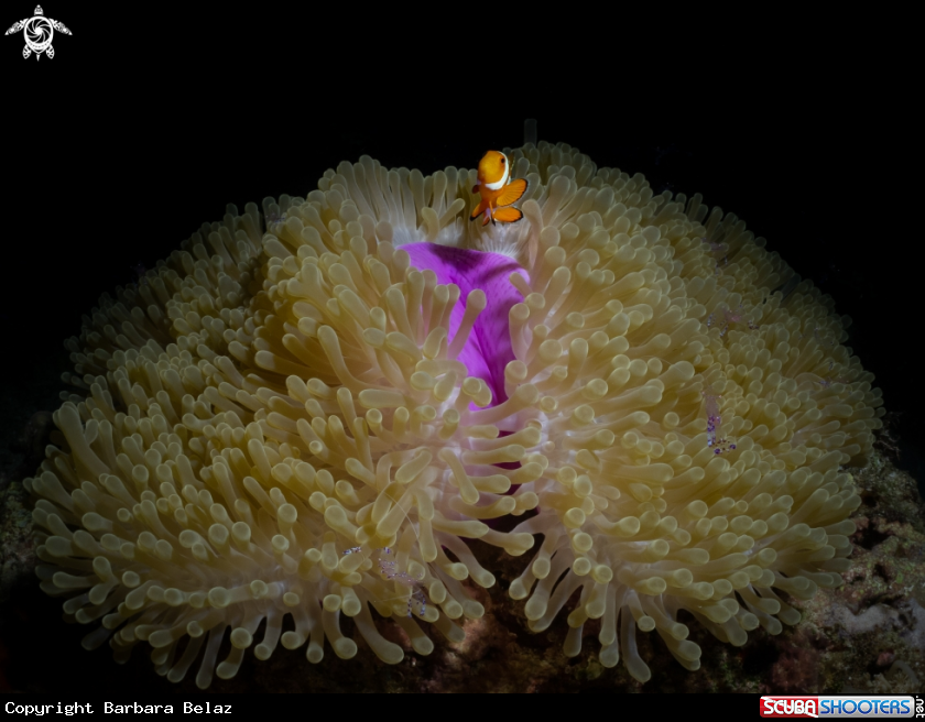 Common Name Clownfish with anemone shrimps