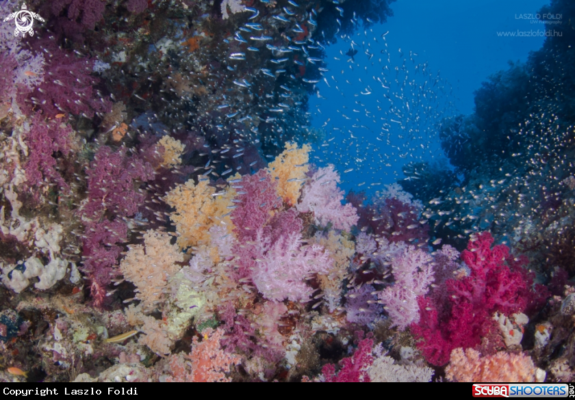 Common Name Soft corals with glass fishes