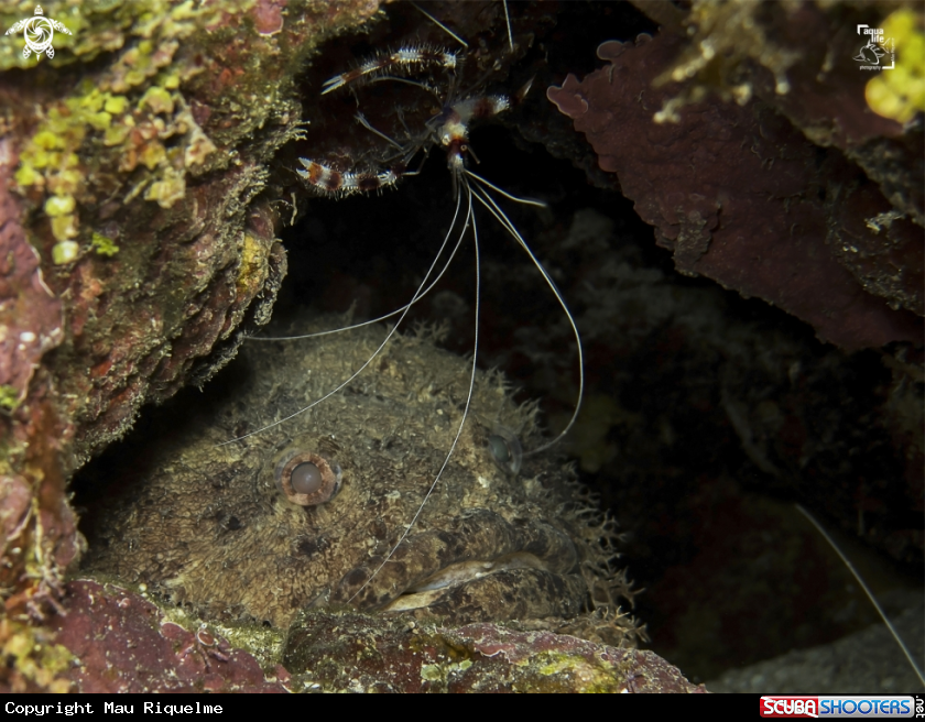 Bearded Toadfish and Banded Coral Shrimp | Mau Riquelme's Photo