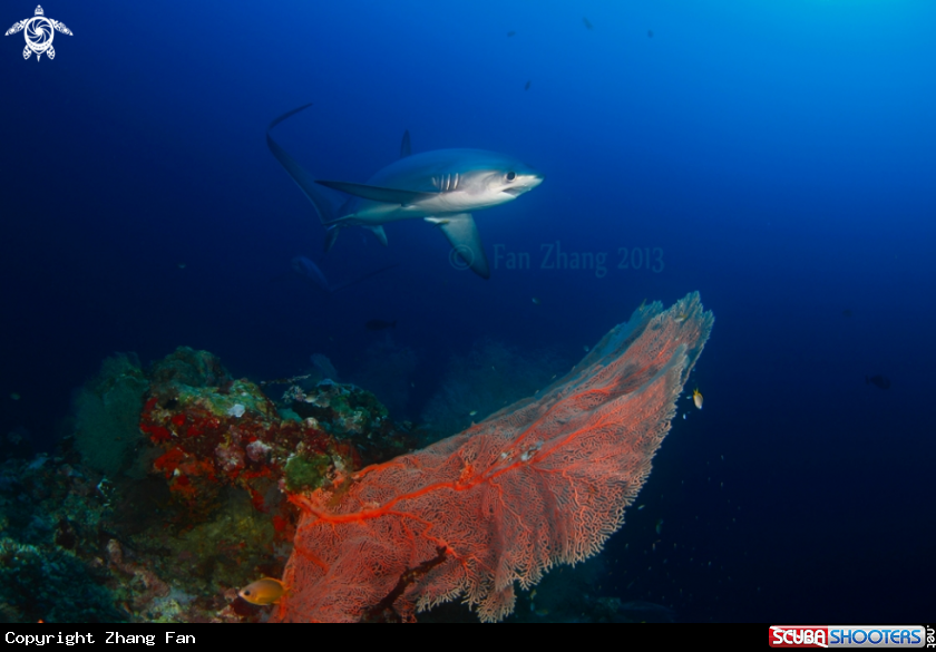 Thresher sharks with sea fan | Zhang Fan's Photo