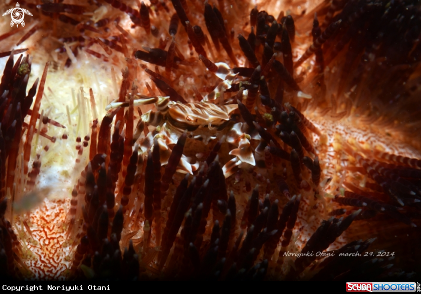 Zebra crab on a venomus sea urchi(Asthenosoma ijimai) | Noriyuki Otani's Photo