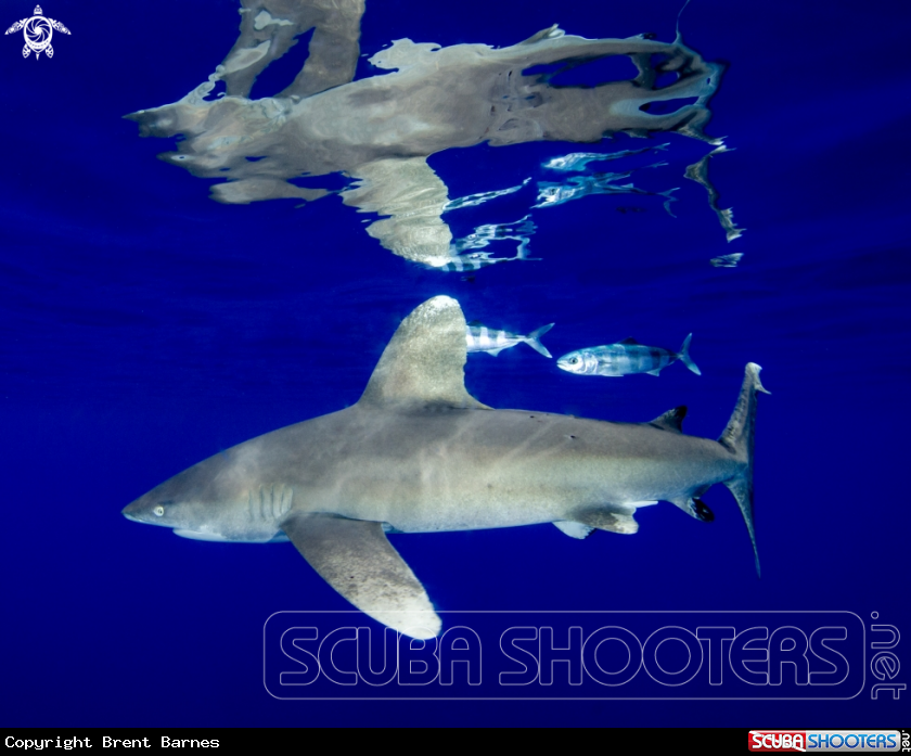 Reflections of an Oceanic White Tip Shark and Pilot Fish | Brent Barnes's Photo