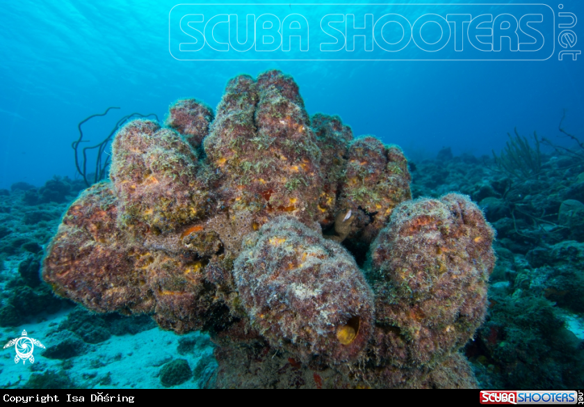 Goldentail moray eel and your Verongula's sponge house | Isa Döring's Photo