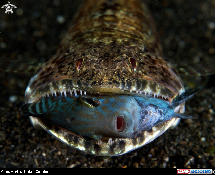Common Name Lizardfish Eating Juvenile Surgeonfish