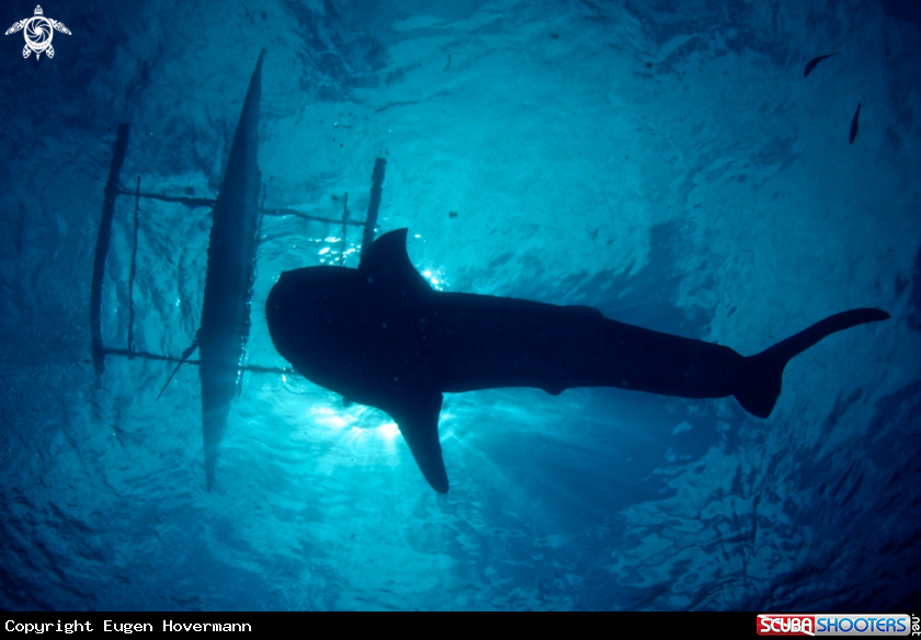 Common Name Whale shark an Boat mixed with sunshine