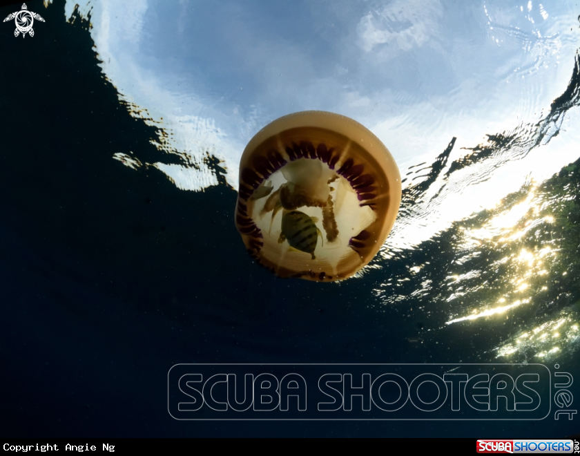 Jellyfish with possible Pilot Fish inside | Angie Ng's Photo