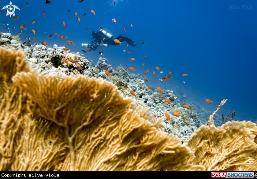 Scientific Name Subergorgia hicksoni in the foreground