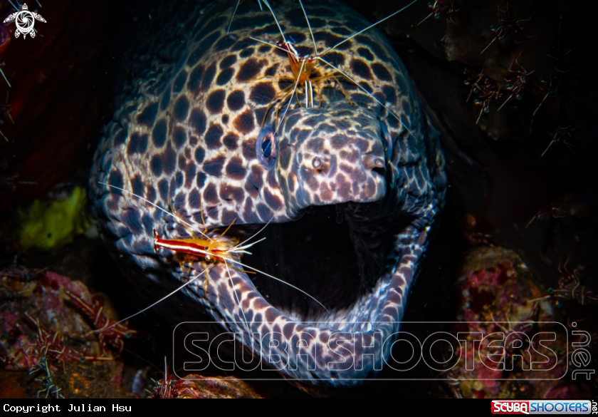 Scientific Name Gymnothorax favagineus & Lysmata amboinensis