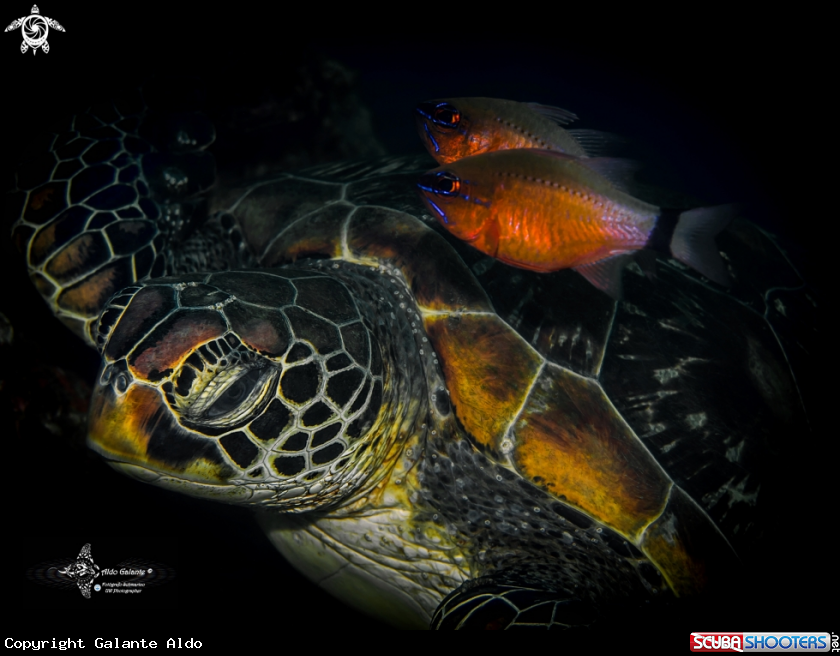 Scientific Name Chelonia mydas (Linnaeus, 1758) - Ostorhinchus aureus (Lacepède, 1802)