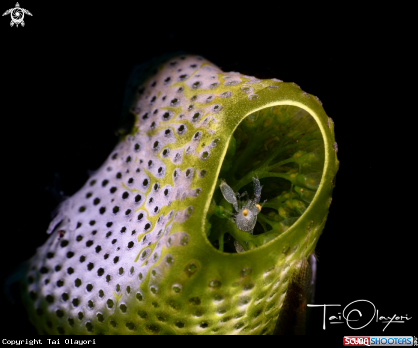 Common Name Cryptic shrimp shrimp commonly found living inside Atriolum robustum