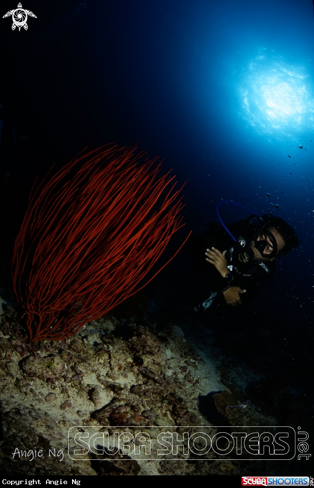 Bright red coral with dive | Angie Ng's Photo